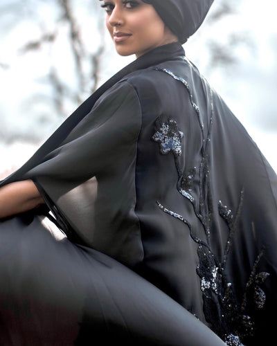 | LUXE | FLOWING NUDE CRYSTAL DETAILED CAPE ABAYA